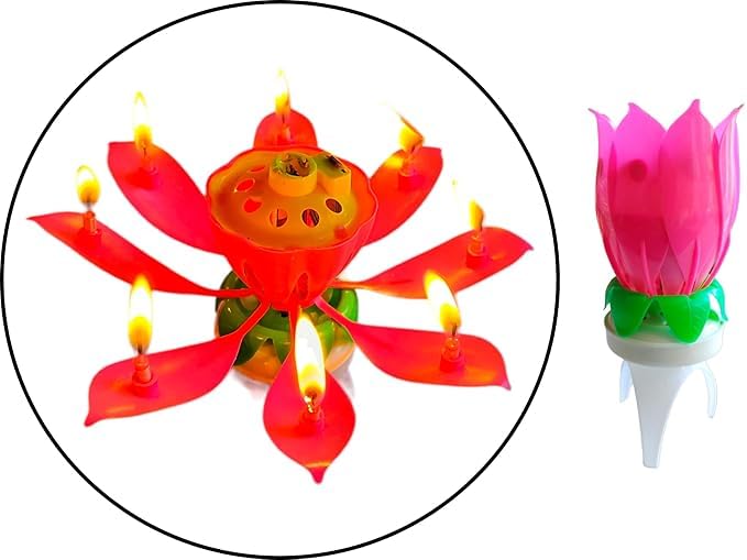 Pink Lotus Design Rotating Musical Candle Set of 1-Pcs Enhance birthday festivities with the Universal Happy See more