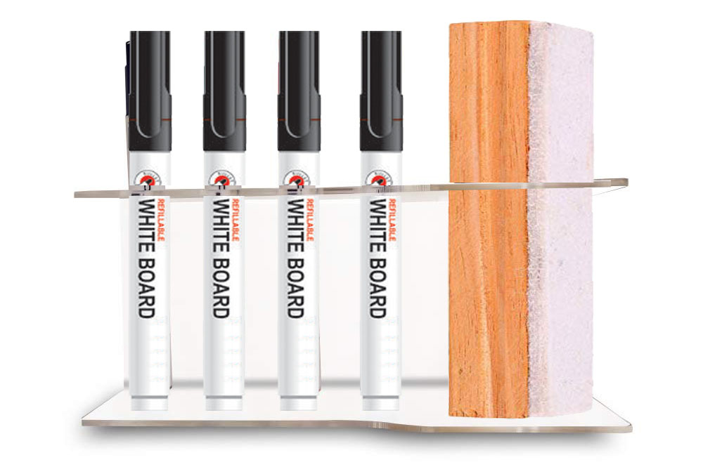 TRANSPARENT ACRYLIC DUSTER AND MARKER PEN STAND FOR WHITE BOARD, 5 COMPARTMENT 4 MARKER PENS & 1 DUSTER | See more
